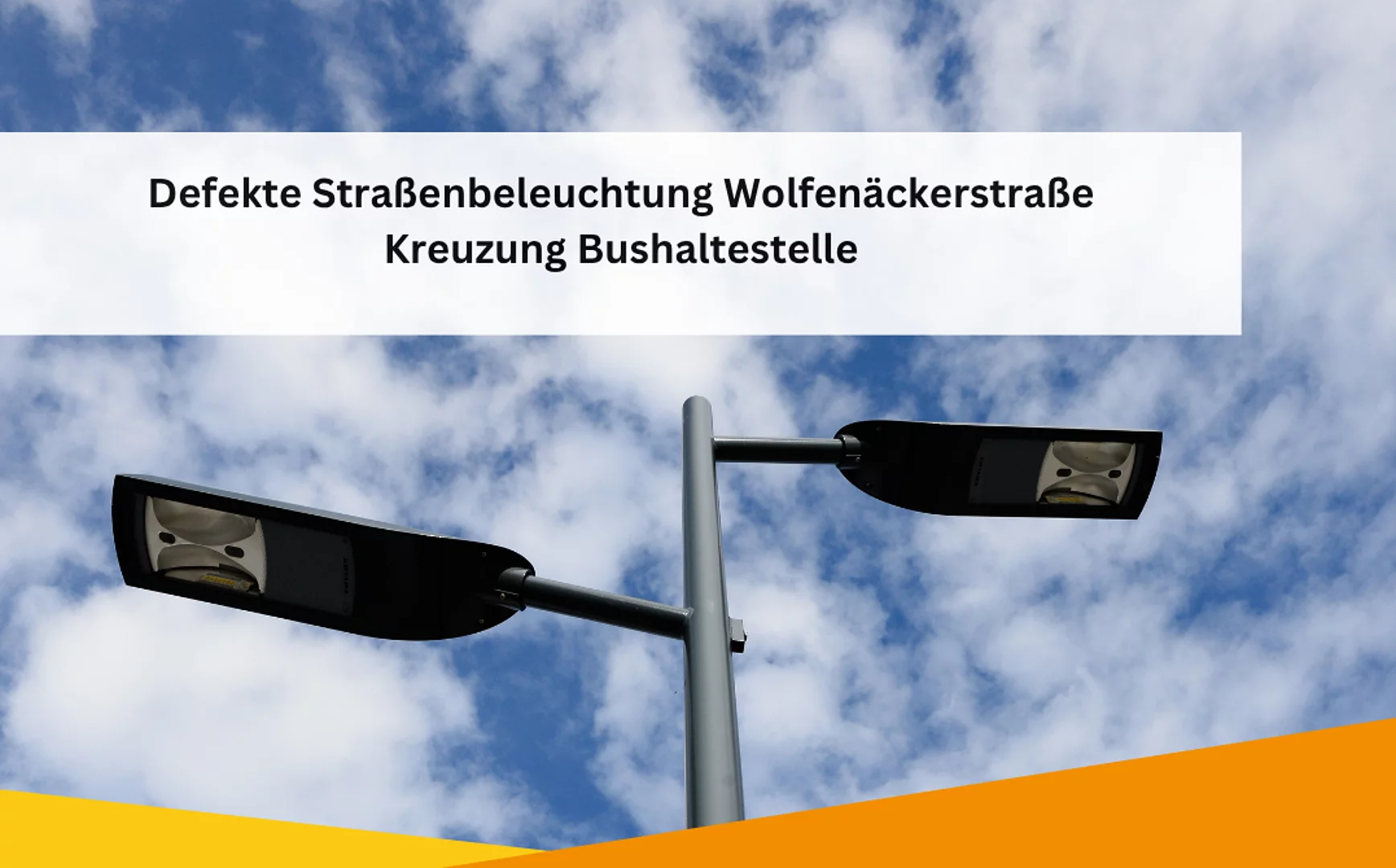 Defekte Straßenbeleuchtung Wolfenäckerstraße, Kreuzung Bushaltestelle