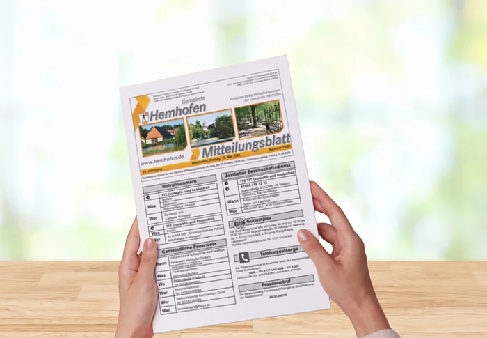Liebe Bürgerinnen und Bürger, anbei finden Sie die Abgabetermine der Artikel für das Mitteilungsblatt im 1. Quartal  2026. Bitte beachten Sie, dass unser Mitteilungsblatt nur im zweiwöchigen Turnus erscheint. Wir bitten dies bei Ihren Planungen zu berücksichtigen.  Die erste Ausgabe im Jahr 2026 erscheint in KW 2 am 09.01.2026. Der Redaktionsschluss ist der 05.01.2026, unabhängig vom Brückentag der Gemeindeverwaltung. Die Redaktion des Mitteilungsblattes wird an diesem Tag besetzt…