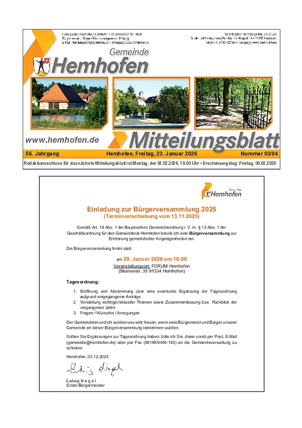 Mitteilungsblatt vom 23. Januar 2026