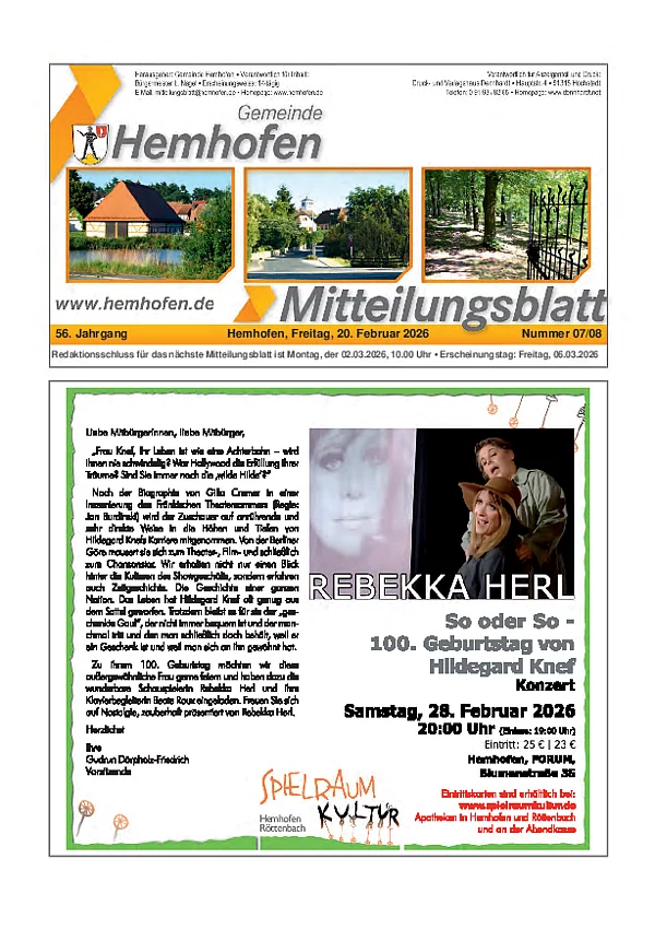 Mitteilungsblatt vom 20. Februar 2026