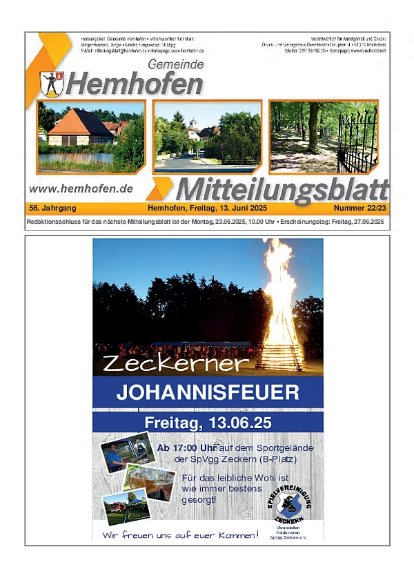 Seit dem 01.01.2016 wird das Mitteilungsblatt Hemhofen vom Druckhaus Dennhardt Verlag GmbH mit Sitz in Höchstadt herausgegeben.