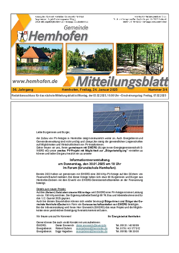 Seit dem 01.01.2016 wird das Mitteilungsblatt Hemhofen vom Druckhaus Dennhardt Verlag GmbH mit Sitz in Höchstadt herausgegeben.